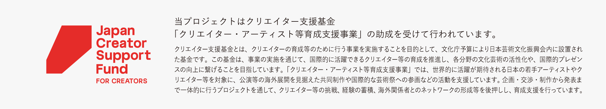 本事業は、クリエイター支援基金による「クリエイター・アーティスト等育成支援事業」の助成を受けて実施されるもので、ATAKの活動指針は大きく三つの柱から構成されています。